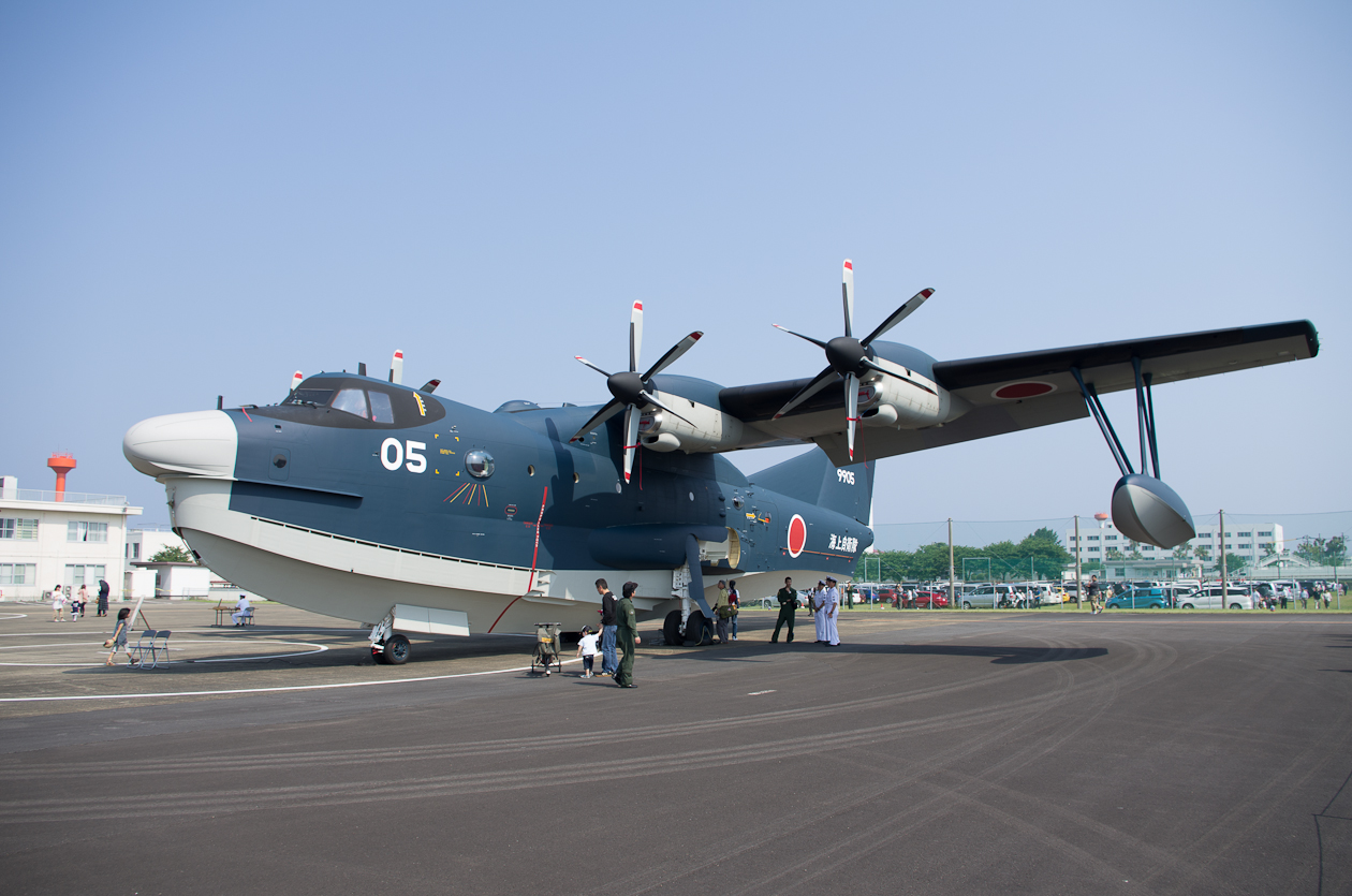 9時過ぎに基地に入って、ぶらぶらと地上展示機を。まずは一番奥に鎮座するUS-2。パイロットの方がおられて色々お話を伺いました。残念ながら今日の飛行展示はありませんが、RTBでは海域から離水するそうで。